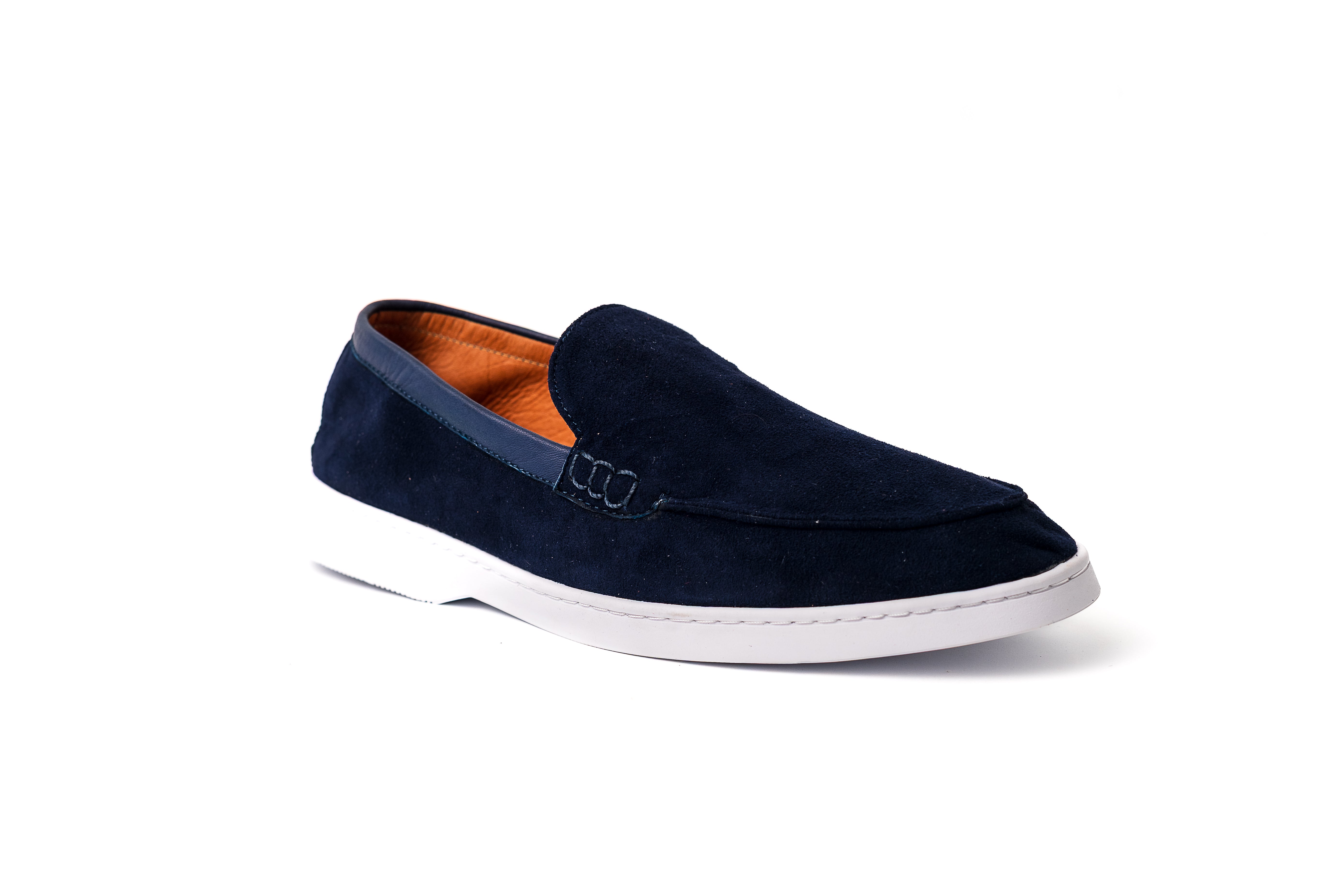 Inspirados en el estilo relajado pero distinguido de la aristocracia costera, los Old Money Loafers Blue combinan el lujo sutil con la comodidad moderna. Confeccionados en gamuza Azul turquí suave al tacto y montados sobre una suela blanca de caucho ultraligera, ofrecen una silueta limpia que transita con naturalidad entre el brunch dominical y una caminata por el puerto. Su interior en cuero caramelo aporta confort absoluto y durabilidad sin sacrificar sofisticación.